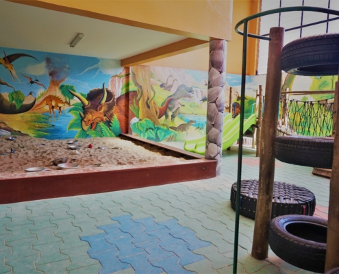 Nossa inspiração está calcada na proposta italiana da cidade de Reggio Emilia onde o ambiente ‘’fala’’, não nos deixa indiferentes, transmite sensações, evoca recordações, passa segurança e inquietação, justamente por estarmos em constante interação. Há um ‘’diálogo’’ constante com o espaço, onde são compartilhadas diferentes experiências que valorizam a participação da criança.