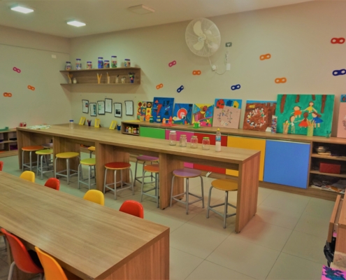 Cada ambiente da escola é pensado para que as atividades e projetos sejam desenvolvidos de forma agradável.