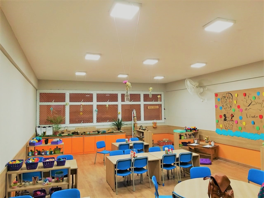 Nossos mobilíarios e recursos em sala de aula são adequados a cada etapa do ensino e idade das crianças , promovendo momentos de trabalho autônomo ou em grupo, sempre com foco na interdisciplinaridade.